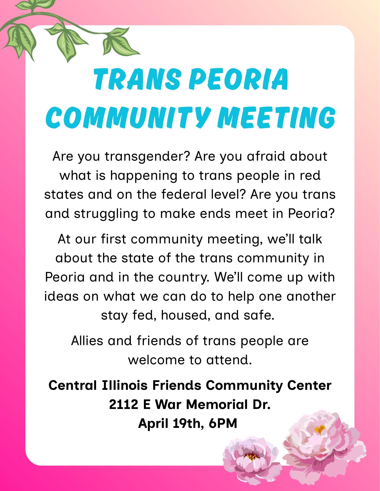 7:00 pm - Trans Peers of Illinois Weekly Social Hangout